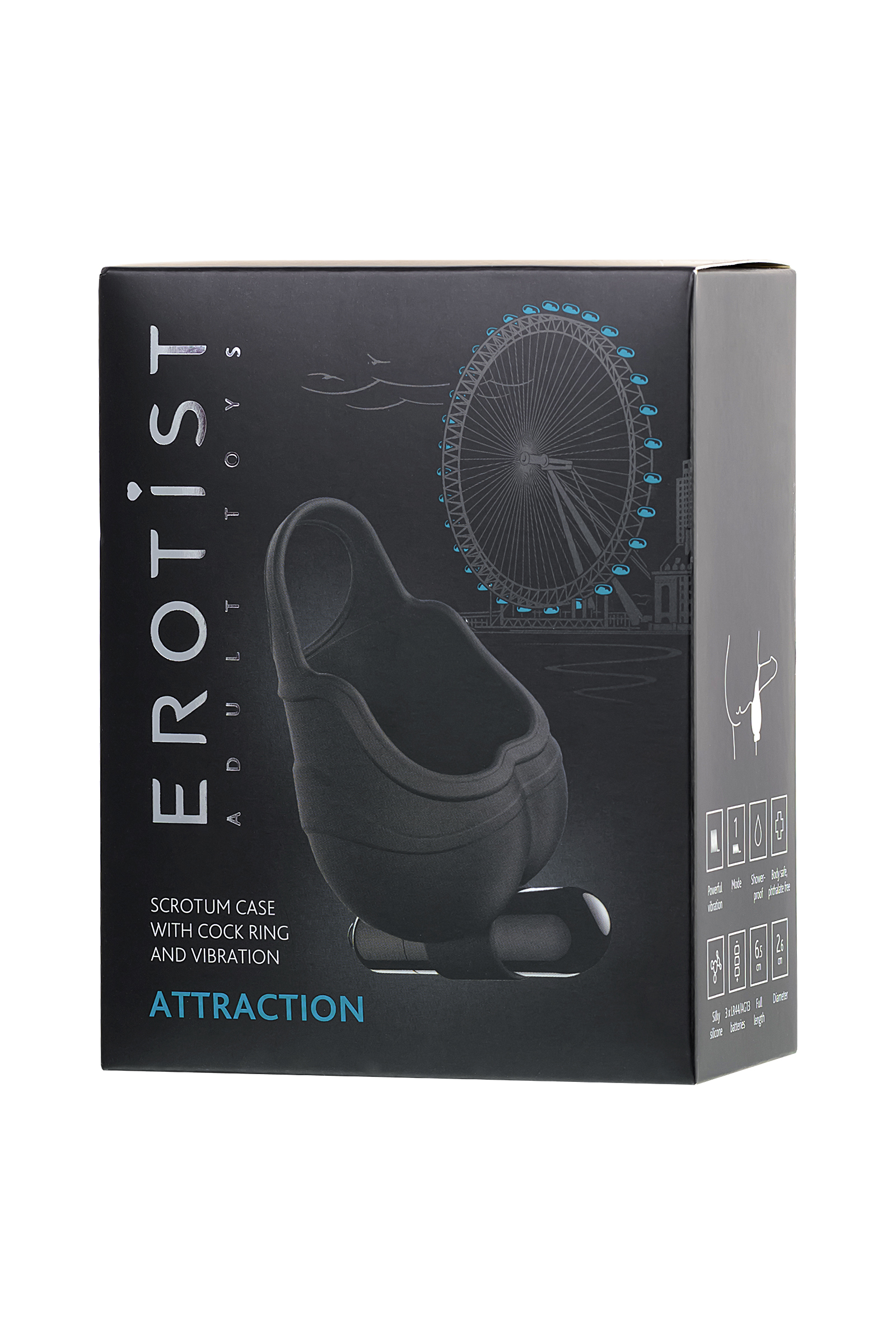 Erotist Halkalı ve Titreşimli Attraction Skrotal Kılıfı, Silikon, siyah, 6,5 cm
