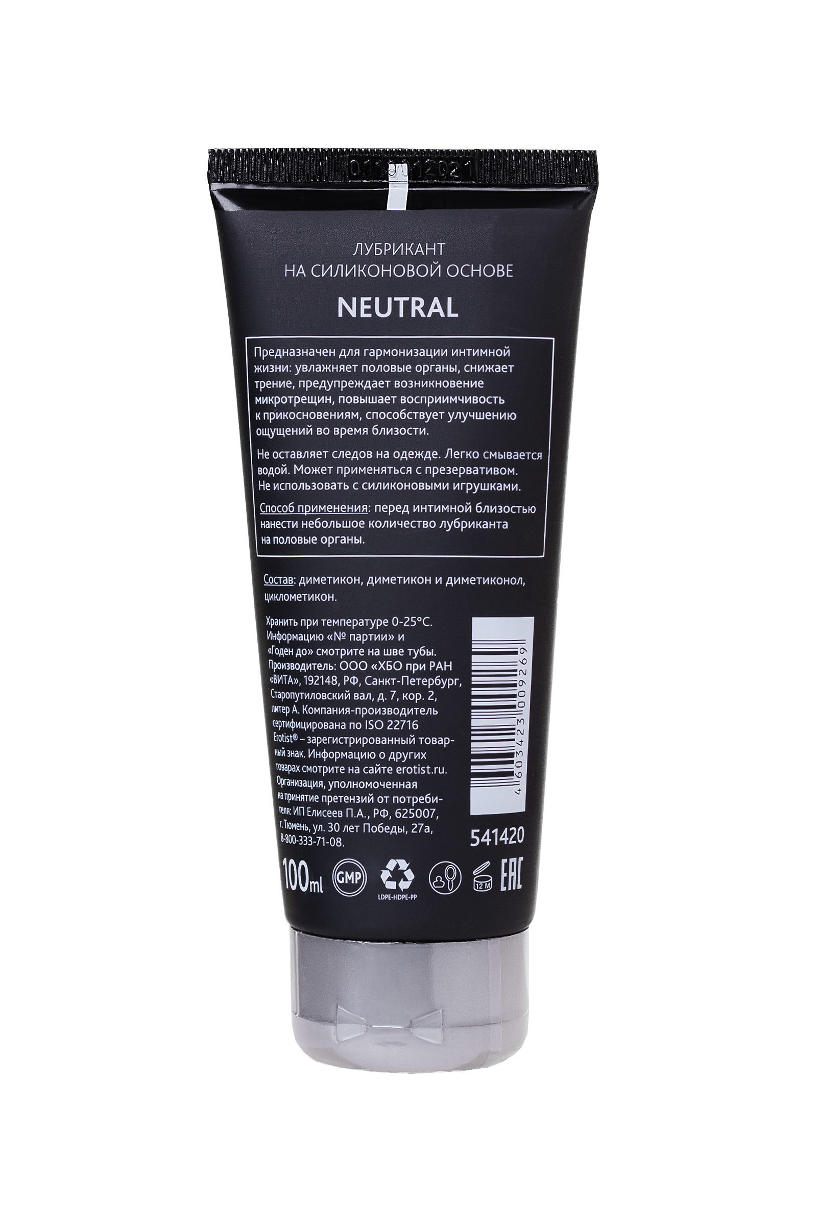 Kahvaltıda, öğle yemeğinde ve akşam yemeğinde seks mi? Kolay — Erotist Nötr yağlayıcı ile. Silikon bazlı formülü uzun süreli ve hoş bir kayma sağlar ve ayrıca mikro çatlaklara karşı korur. Kayganlaştırıcının nötr bir kokusu vardır ve giysilerde iz bırakmaz. Prezervatiflerine bile zarar vermez. Erotist Neutral yağlayıcının silikon tabanı vardır: hipoalerjeniktir, prezervatiflerle uyumludur, iz bırakmaz ve su ile kolayca yıkanır. Silikon seks oyuncakları ile uyumlu değil