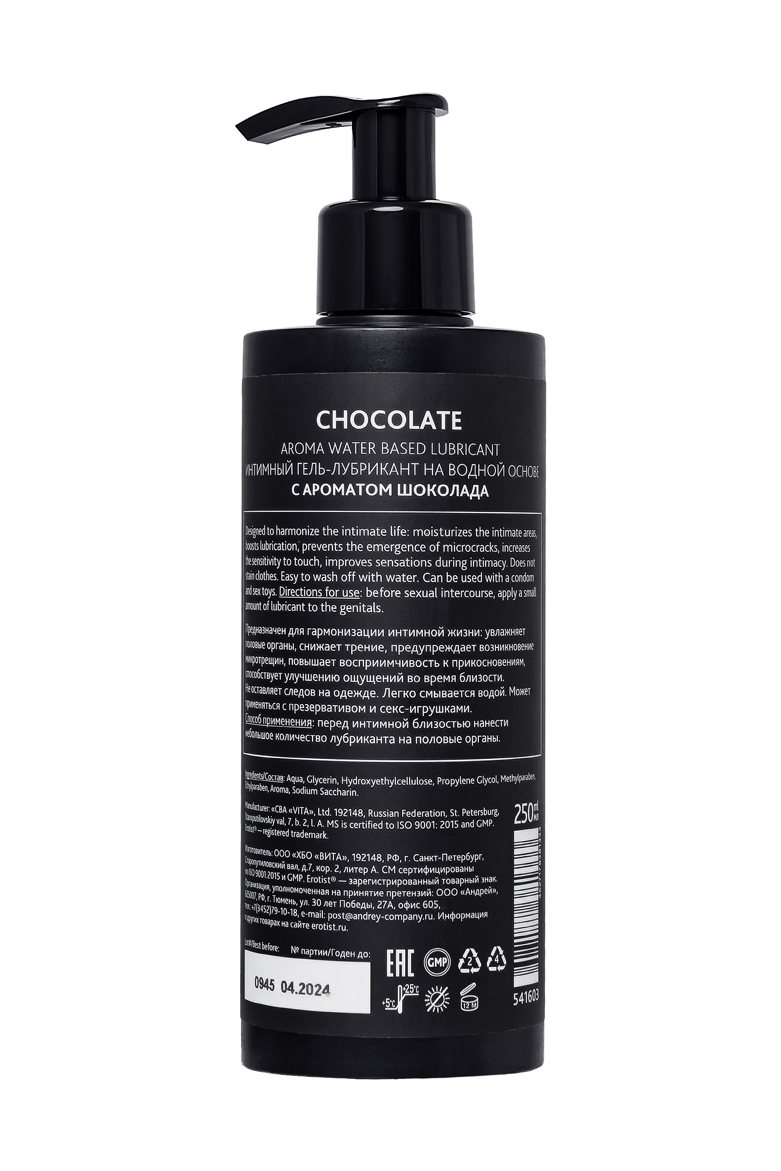 Erotist Lubr su bazlı çikolata aromalı yağlayıcı, çikolata aromalı, 250 ml