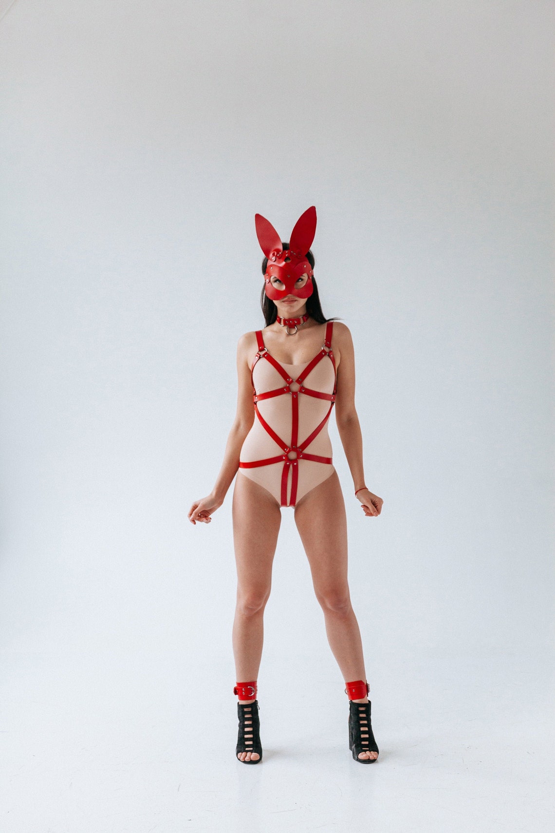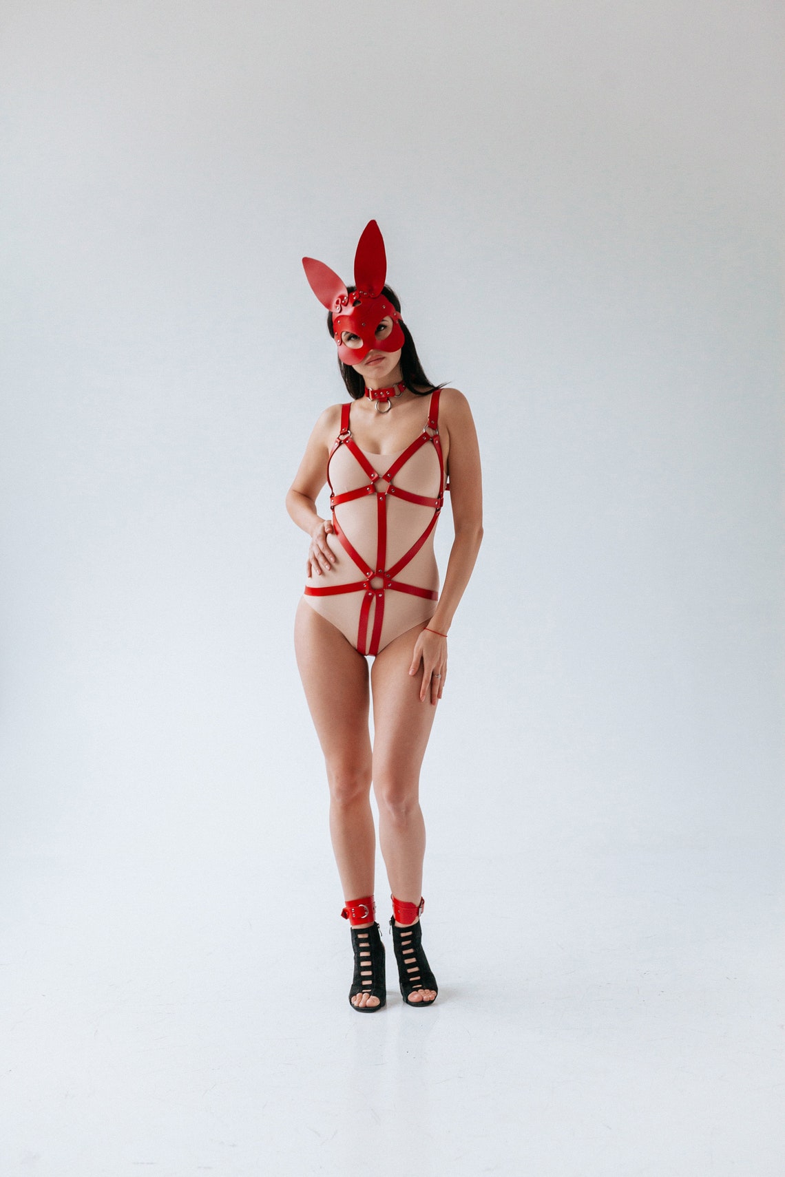 Fancy Fantezi Kırmızı Özel Bölgesi Açık Fantezi Kostüm