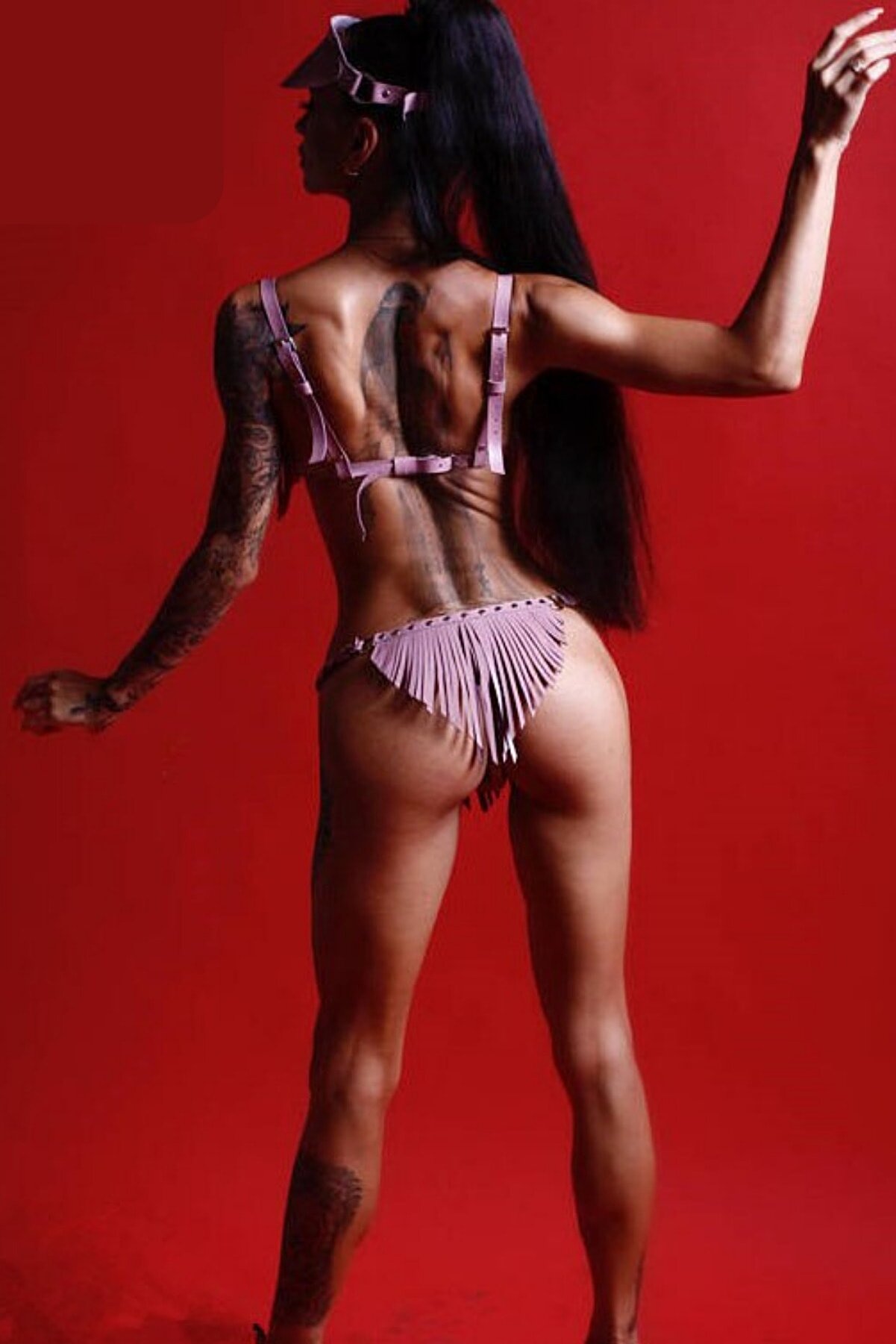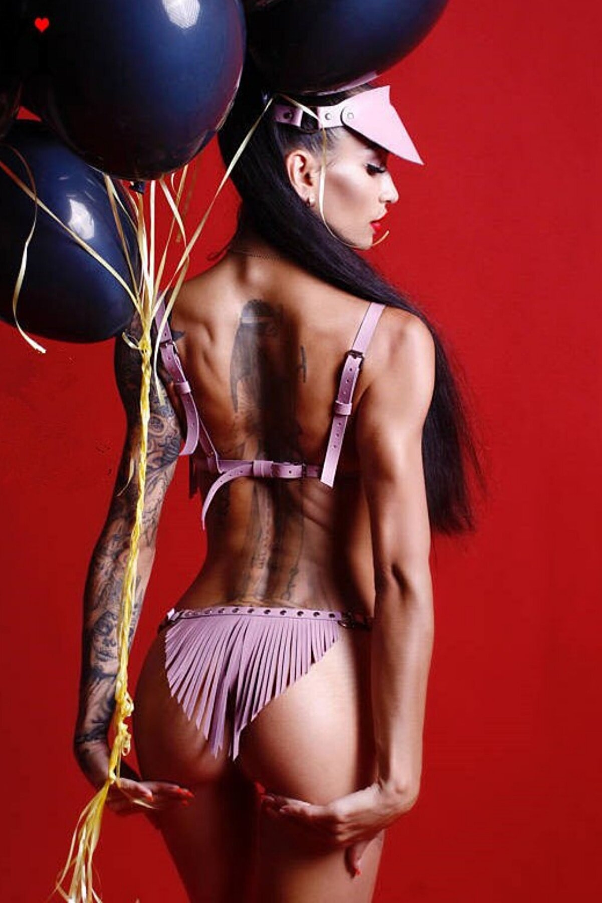 Fatnezi Deri Etek Sütyen Takım Pembe Body Harness