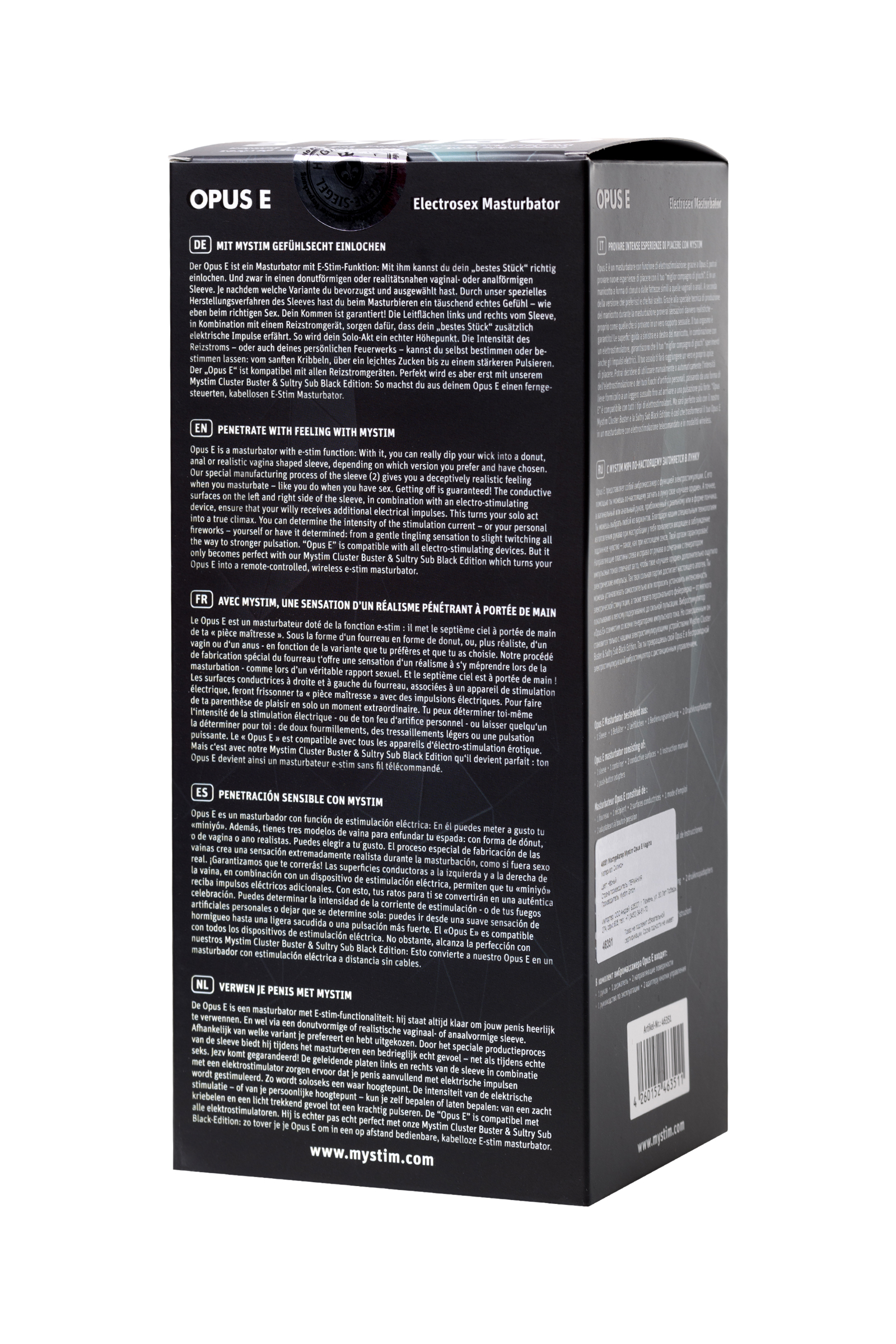 Mystim Opus E Vagina yeni nesil bir mastürbatördür. Cephaneliğinde, güçlü bir erotik masaj için etkileyici rahatlamanın yanı sıra, zevki bir seviyeye çıkaran bir elektrik stimülatörü de vardır. Masturbator penisini sıkıca sarar ve iç rahatlama ona çok hassas bir şekilde aktif olarak masaj yapar. Aslında, deneyimli bir masözün elleriyle baş döndürücü bir mastürbasyon gibi hissettiriyor. Baştan çıkarıcı "süngerlerin" şekli süreci eğlenceli bir ruh haline getirir ve nazik materyal gerçek cinsiyeti taklit eder. Mystim Cluster Buster veya Sultry Sub Black, masturbator'u cinsel deneylerin orgazmların havai fişekleri haline getirdiği bir elektrik stimülatörüne dönüştürür. Alaycı karıncalanmalar veya somut dürtüler - elektrik stimülatörü seçtiğiniz senaryoyu şımartacaktır. Şık kasa elinizde rahatça oturur ve oyundan rahatsız olmamanızı sağlar. Cihaz bakım konusunda oldukça belirsizdir - yeterince sabun ve ılık su veya dezenfektana sahiptir. Masturbator Mystim Opus E Vagina - daha fazlasına layık olanlar için.